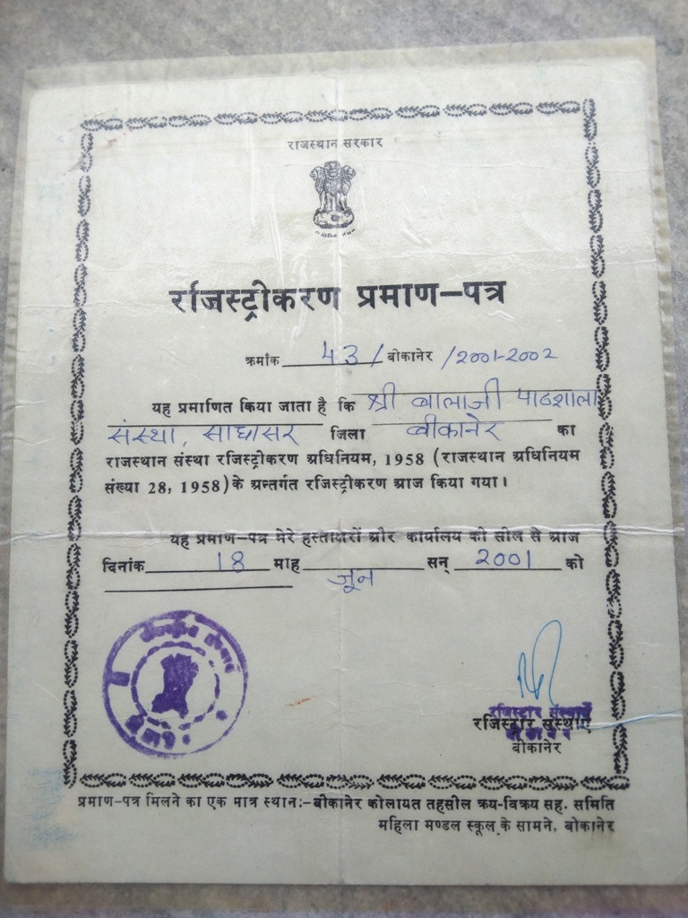 9829922370, 9001265646 Sbpssadhasar@gmail.comSadhasar, Teh. Jasrasar, Distt. Bikaner (Raj.) 334802