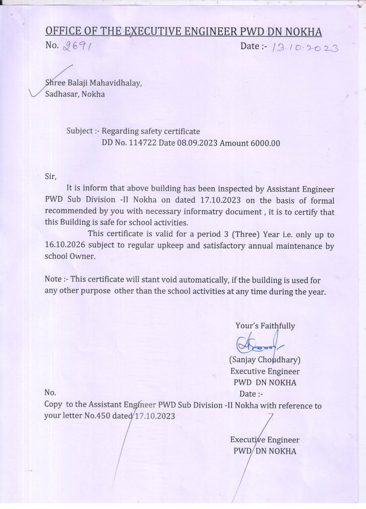 Shri Balaji College, Sadhasar, Nokha is always fair. Admission procedure is purely based on merit basis. After merit list, personal interview is taken of each of the candidates. Only those candidates are eligible for admission who get excellent marks in both of the tests. Once selected,the candidates are required to pay the fees on or before the prescribed date in order to confirm their admission, failing which the next student in the merit list would be offered the admission. At the time of admission, all supporting and relevant documents/certificates as stated in the application must be submitted to the College.The fees will not be refunded due to cancellation of admission for any reasons once the course begins.